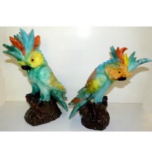 Pappagallo alabastro colorato a mano, misure da sx. 32x20x10 cm, 25x20x8 cm.